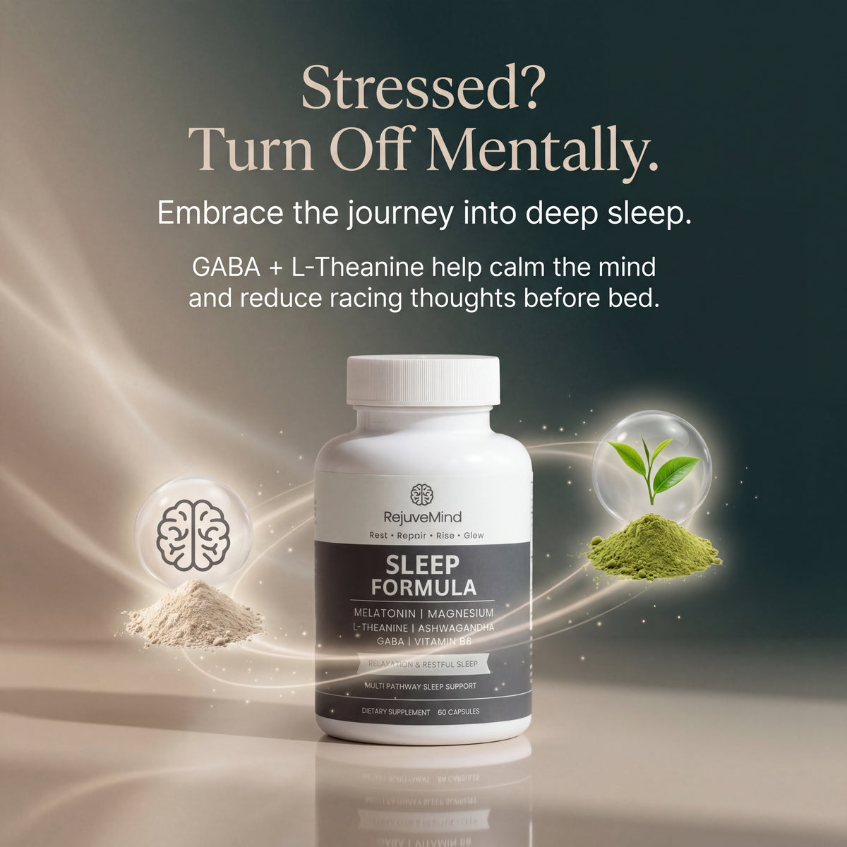 Stop struggling with racing thoughts or heavy mornings that ruin your day. Our botanical blend calms your mind for a deep, natural, and truly restful sleep.